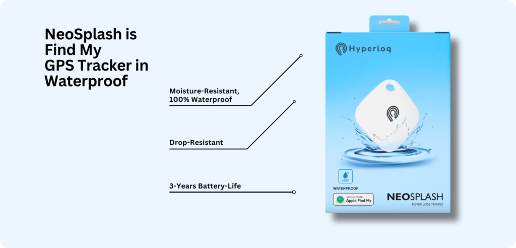 Το HyperLoq™ NeoSplash Waterproof είναι σχεδιασμένο για χρήστες που αναζητούν 100% αδιάβροχη προστασία σε συνδυασμό με υψηλή τεχνολογία εντοπισμού. Το ιδανικό εργαλείο για όσους ασχολούνται με εξωτερικές δραστηριότητες και χρειάζονται ένα αξιόπιστο μέσο παρακολούθησης των αντικειμένων τους, ανεξάρτητα από τις συνθήκες.